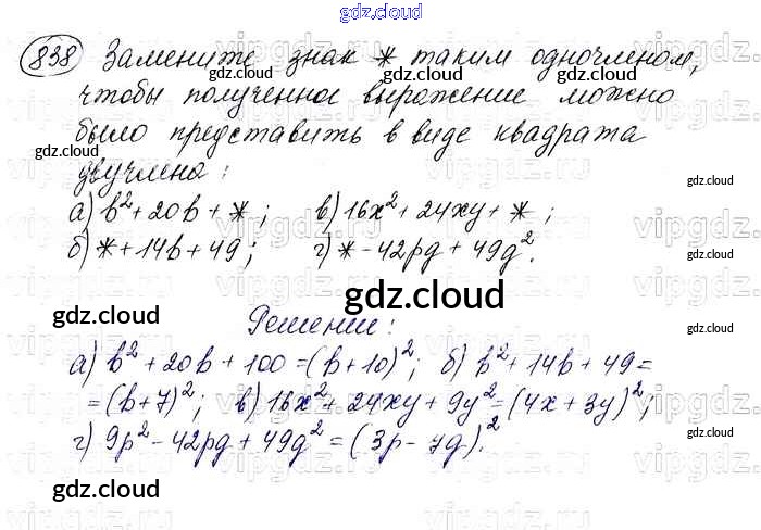 Ответ на задание 838 Учебник Алгебра за 7 (седьмой) класс Макарычев, Миндюк, Нешков, Суворова 2015