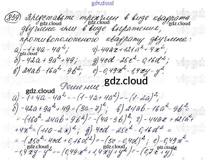 Ответ на задание 839 Учебник Алгебра  за 7 (седьмой) класс Макарычев, Миндюк, Нешков, Суворова   2015