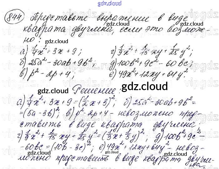Ответ на задание 844 Учебник Алгебра за 7 (седьмой) класс Макарычев, Миндюк, Нешков, Суворова 2015