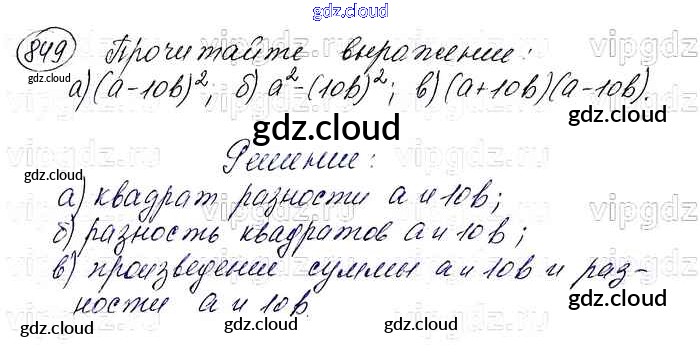 Ответ на задание 849 Учебник Алгебра за 7 (седьмой) класс Макарычев, Миндюк, Нешков, Суворова 2015