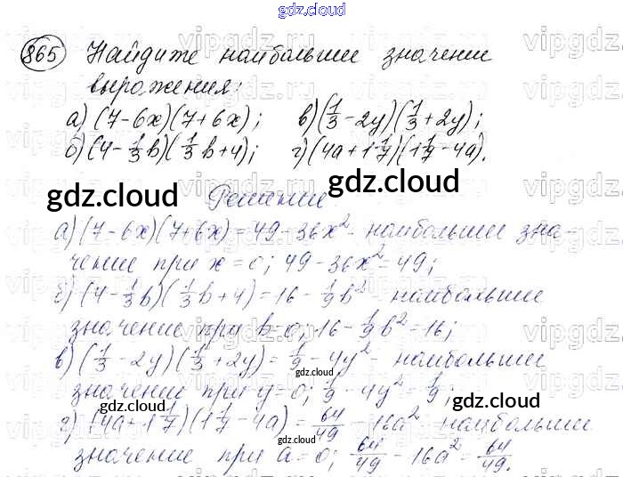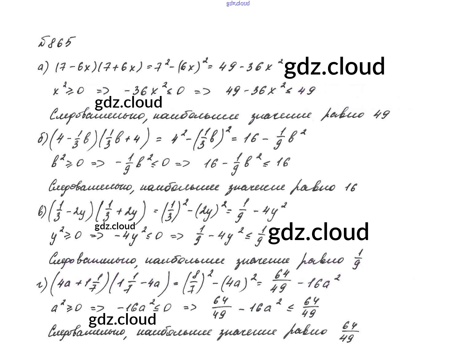 Ответ на задание 865 Учебник Алгебра за 7 (седьмой) класс Макарычев, Миндюк, Нешков, Суворова 2015