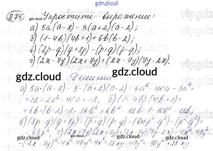 Ответ на задание 875 Учебник Алгебра  за 7 (седьмой) класс Макарычев, Миндюк, Нешков, Суворова   2015