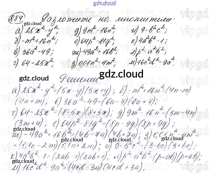 Ответ на задание 884 Учебник Алгебра  за 7 (седьмой) класс Макарычев, Миндюк, Нешков, Суворова   2015