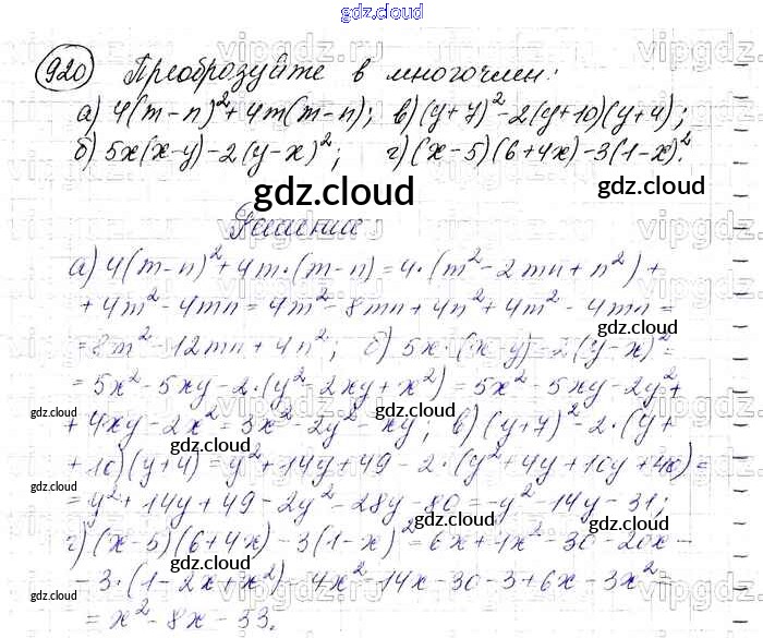 Ответ на задание 920 Учебник Алгебра за 7 (седьмой) класс Макарычев, Миндюк, Нешков, Суворова 2015