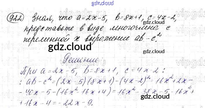 Ответ на задание 922 Учебник Алгебра  за 7 (седьмой) класс Макарычев, Миндюк, Нешков, Суворова   2015