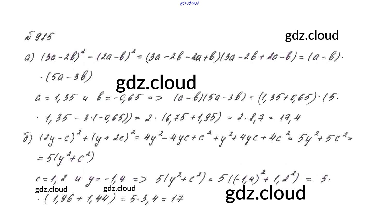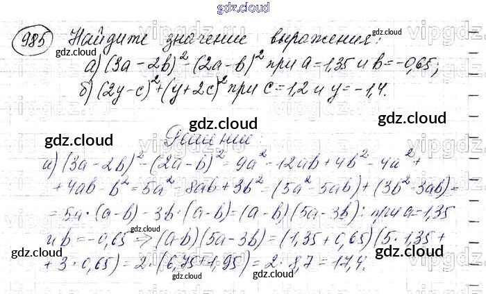 Ответ на задание 985 Учебник Алгебра за 7 (седьмой) класс Макарычев, Миндюк, Нешков, Суворова 2015