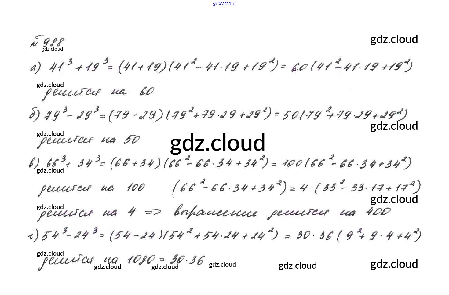 Ответ на задание 988 Учебник Алгебра  за 7 (седьмой) класс Макарычев, Миндюк, Нешков, Суворова   2015