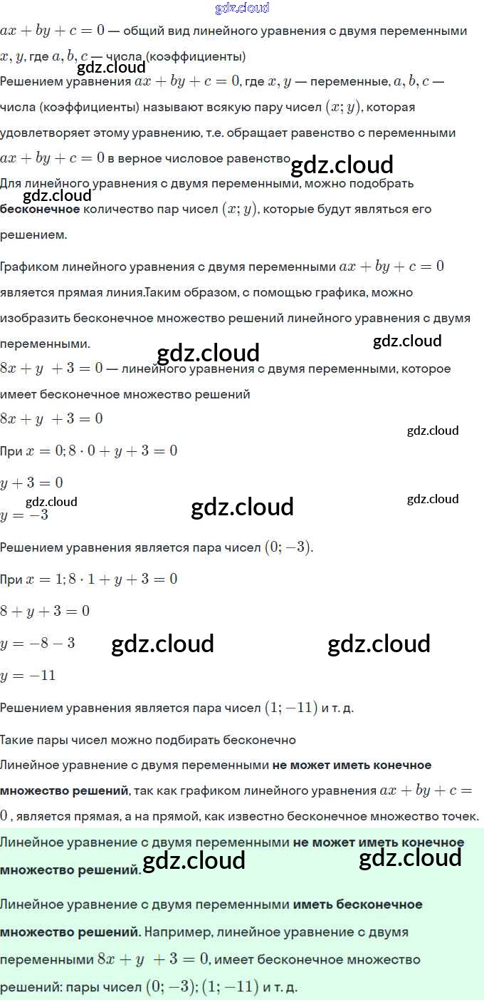 §7. Линейное уравнение с двумя переменными и его график Ответы. Глава 2. Линейная функция по Алгебре 7 класс Учебник Мордкович Базовый уровень Часть 1 Мнемозина