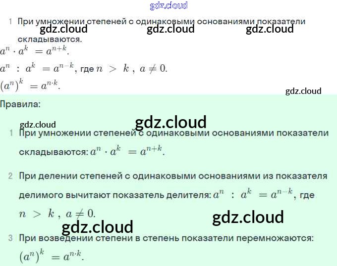 §17. Свойства степени с натуральными показателями Ответы. Глава 4. Степень с натуральным показателем и её свойства по Алгебре 7 класс Учебник Мордкович Базовый уровень Часть 1 Мнемозина