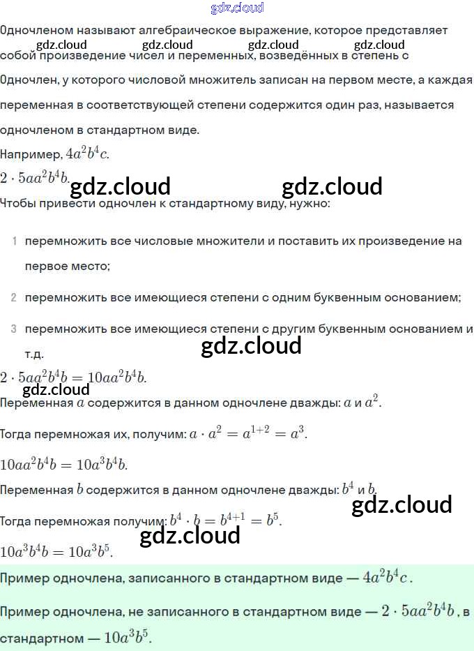 §20. Понятие одночлена. Стандартный вид одночлена Ответы. Глава 5. Одночлены. Арифметические операции над одночленами по Алгебре 7 класс Учебник Мордкович Базовый уровень Часть 1 Мнемозина