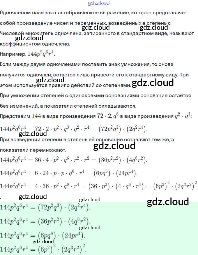 §22. Умножение одночленов. Возведение одночлена в натуральную степень Ответы. Глава 5. Одночлены. Арифметические операции над одночленами по Алгебре 7 класс Учебник Мордкович Базовый уровень Часть 1 Мнемозина