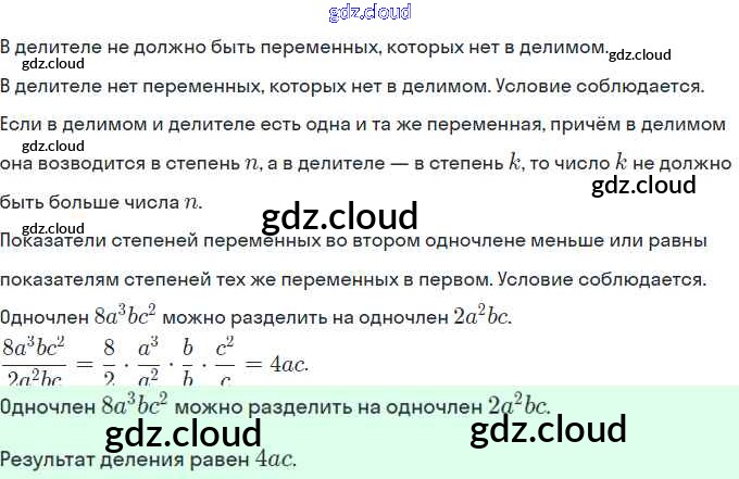 §23. Деление одночлена на одночлен Ответы. Глава 5. Одночлены. Арифметические операции над одночленами по Алгебре 7 класс Учебник Мордкович Базовый уровень Часть 1 Мнемозина