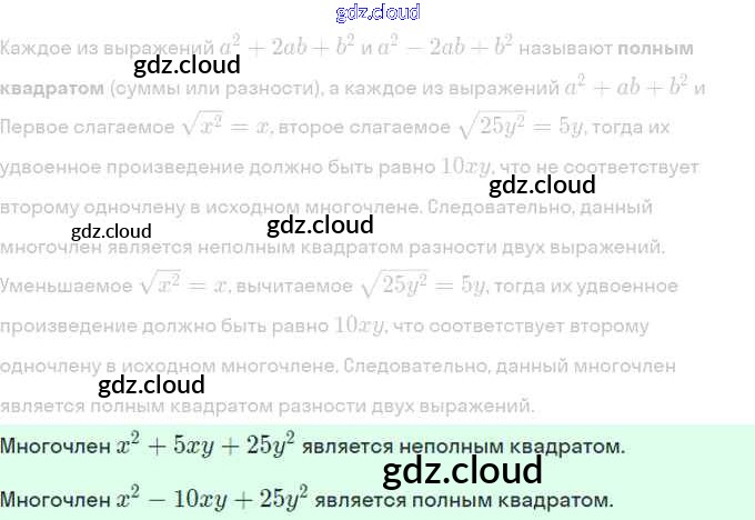 §28. Формулы сокращенного умножения Ответы. Глава 6. Многочлены. Арифметические операции над многочленами по Алгебре 7 класс Учебник Мордкович Базовый уровень Часть 1 Мнемозина