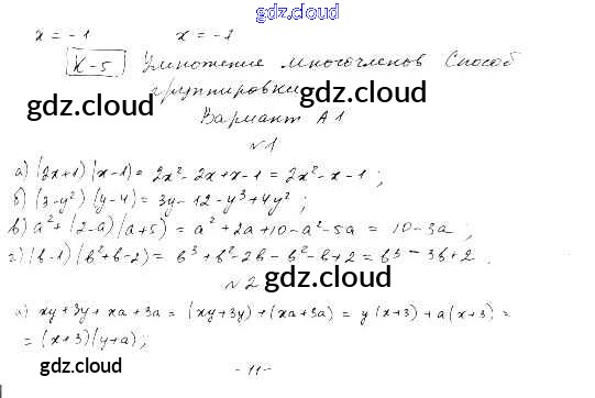 КР-5. Умножение многочленов. Способ группировки Контрольные работы по Алгебре 7 класс Самостоятельные и контрольные работы Ершова    Илекса