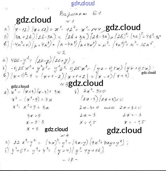 СР-14. Разность квадратов. Сумма и разность кубов Самостоятельные работы по Алгебре 7 класс Самостоятельные и контрольные работы Ершова    Илекса