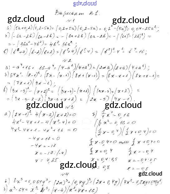 СР-14. Разность квадратов. Сумма и разность кубов Самостоятельные работы по Алгебре 7 класс Самостоятельные и контрольные работы Ершова    Илекса