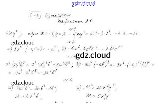СР-8. Одночлен Самостоятельные работы по Алгебре 7 класс Самостоятельные и контрольные работы Ершова    Илекса