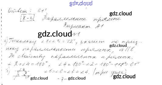 КР-3. Параллельные прямые Контрольные работы по Алгебре 7 класс Самостоятельные и контрольные работы Ершова    Илекса