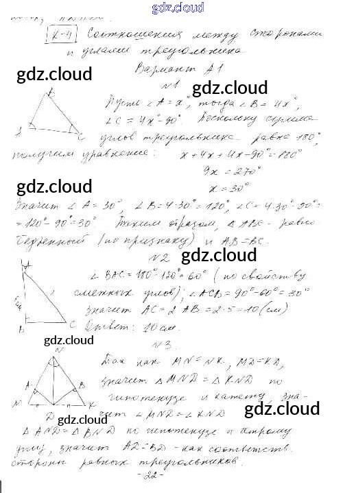 КР-4. Соотношения между сторонами и углами треугольника Контрольные работы по Алгебре 7 класс Самостоятельные и контрольные работы Ершова    Илекса