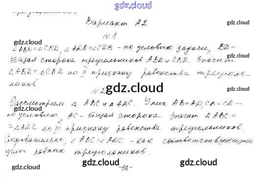 СР-8. Второй и третий признаки равенства треугольников Самостоятельные работы по Алгебре 7 класс Самостоятельные и контрольные работы Ершова    Илекса