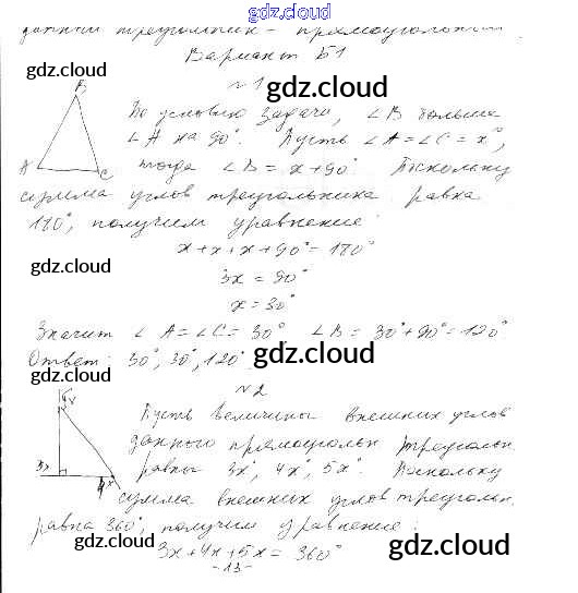 СР-12. Сумма углов треугольника Самостоятельные работы по Алгебре 7 класс Самостоятельные и контрольные работы Ершова    Илекса