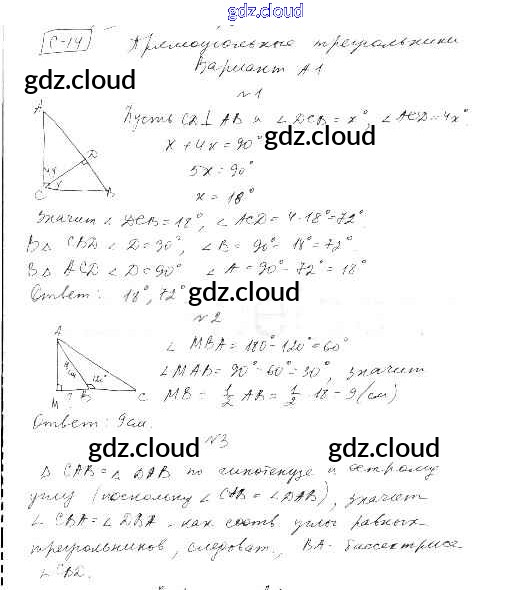 СР-14. Прямоугольные треугольники Самостоятельные работы по Алгебре 7 класс Самостоятельные и контрольные работы Ершова    Илекса