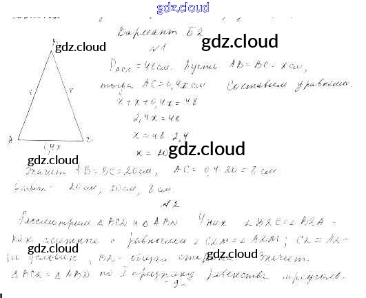 КР-2. Первый и второй признаки равенства треугольников Контрольные работы по Алгебре 7 класс Самостоятельные и контрольные работы Ершова    Илекса