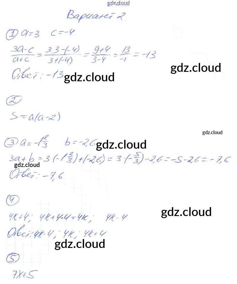 Ответ на задание 2 Дидактические материалы Алгебра  за 7 (седьмой) класс Зив, Гольдич   2013