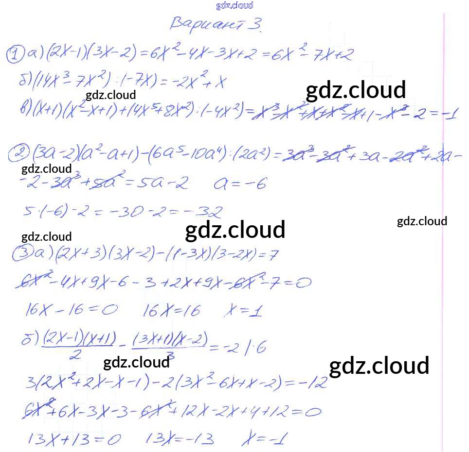 Ответ на задание 3 Дидактические материалы Алгебра  за 7 (седьмой) класс Зив, Гольдич   2013