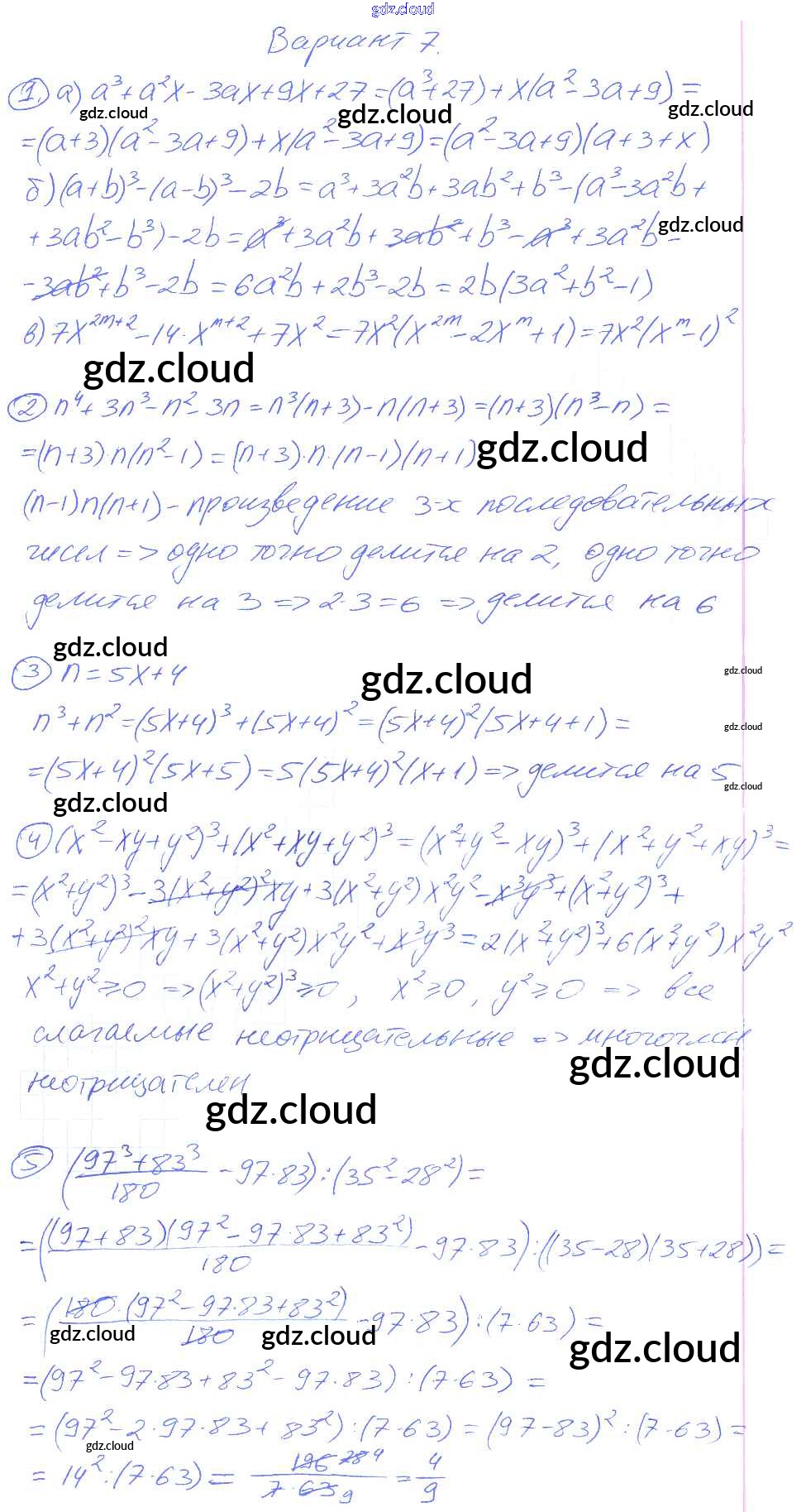 Ответ на задание 7 Дидактические материалы Алгебра  за 7 (седьмой) класс Зив, Гольдич   2013