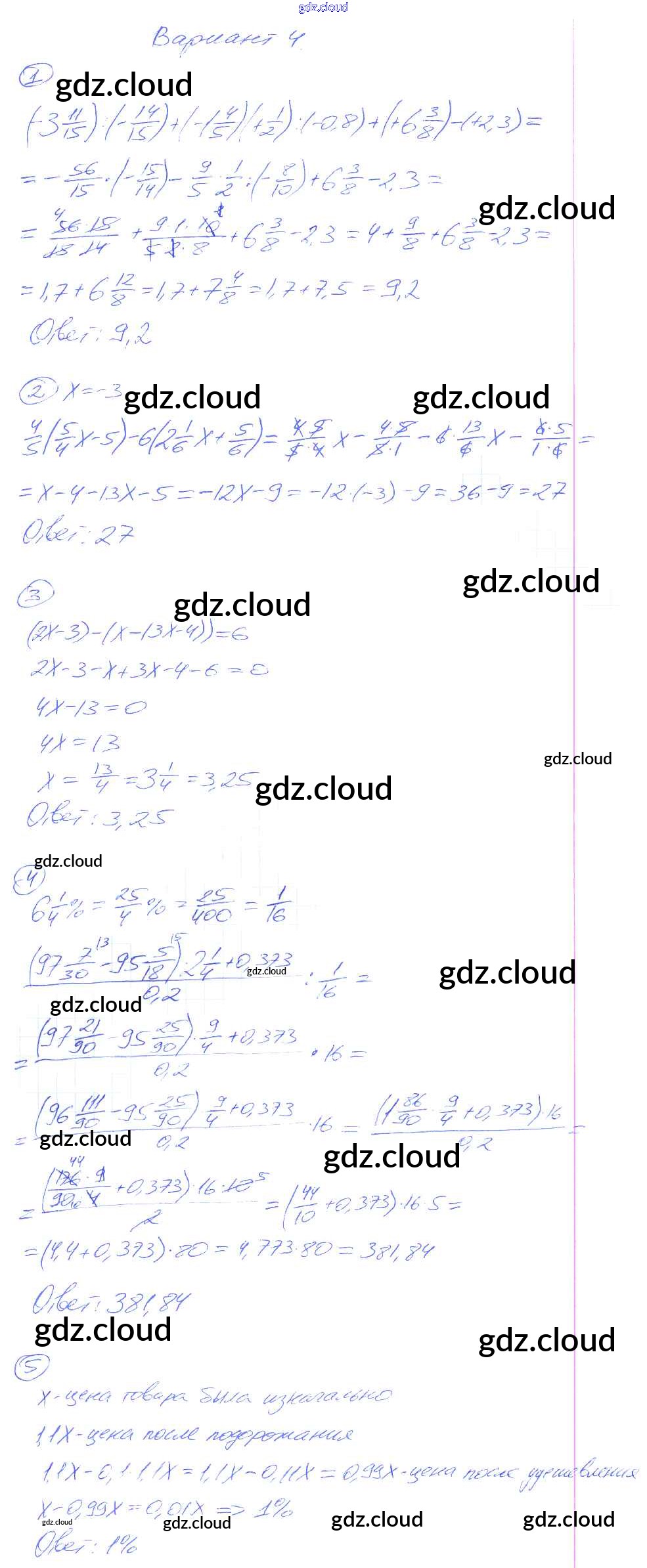 Ответ на задание 4 Дидактические материалы Алгебра  за 7 (седьмой) класс Зив, Гольдич   2013
