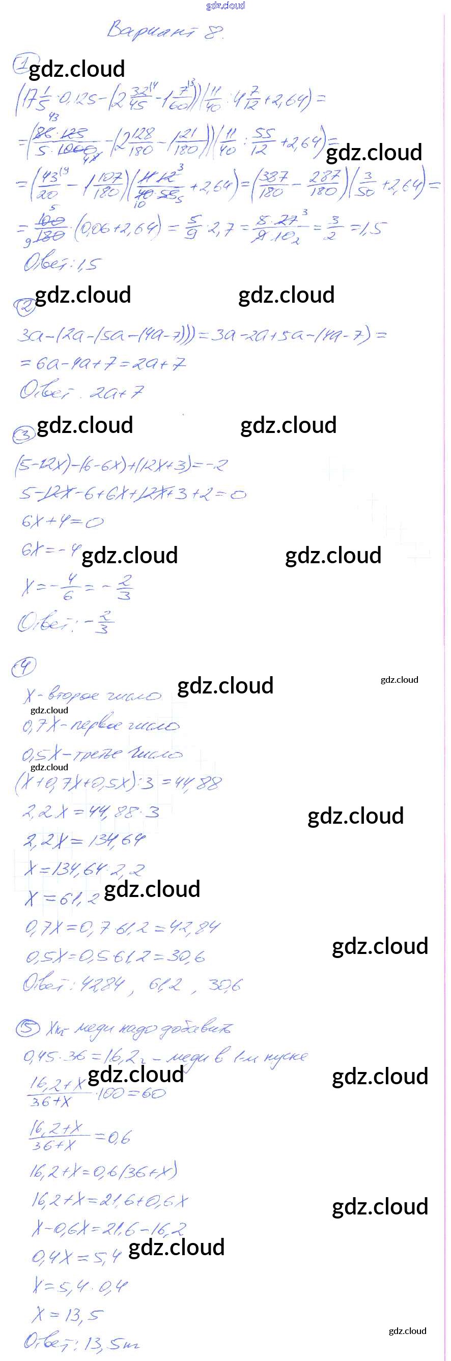 Ответ на задание 8 Дидактические материалы Алгебра  за 7 (седьмой) класс Зив, Гольдич   2013