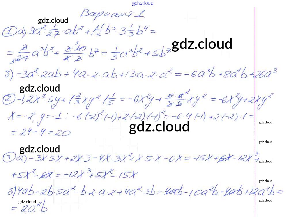 Ответ на задание 1 Дидактические материалы Алгебра за 7 (седьмой) класс Зив, Гольдич 2013