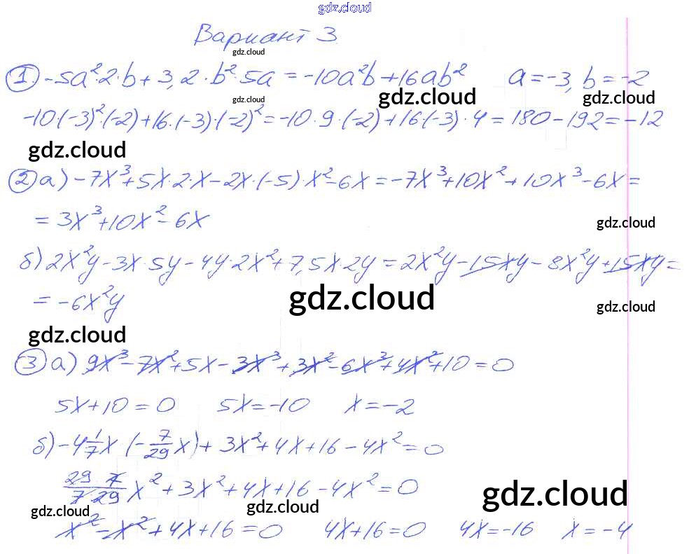 Ответ на задание 3 Дидактические материалы Алгебра  за 7 (седьмой) класс Зив, Гольдич   2013