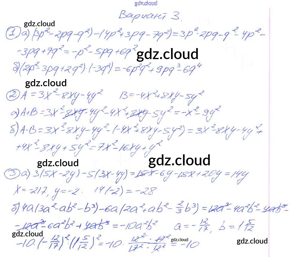 Ответ на задание 3 Дидактические материалы Алгебра  за 7 (седьмой) класс Зив, Гольдич   2013