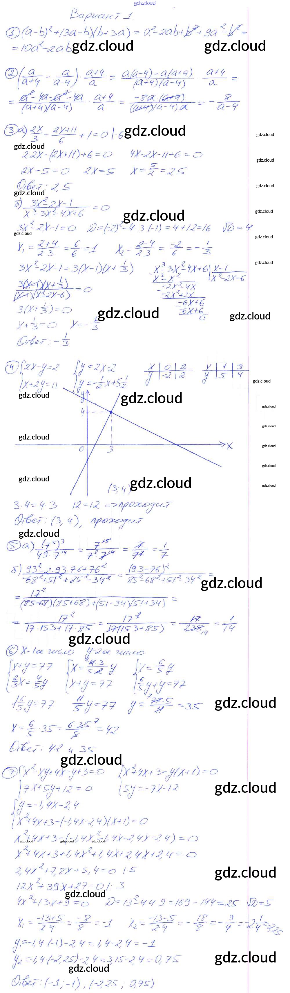 КР-8 Ответы к Контрольным работам. Варианты по Алгебре 7 класс Дидактические материалы Зив    Виктория плюс