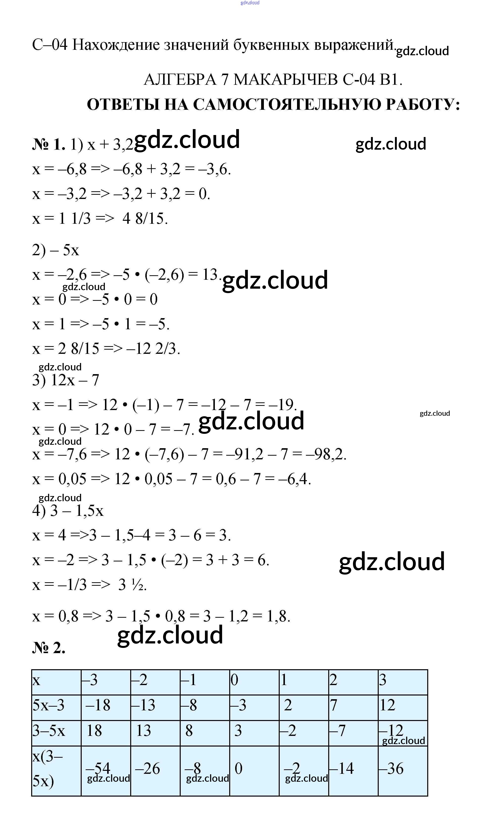 Ответ на задание С-4. Нахождение значений буквенных выражений Дидактические материалы Алгебра  за 7 (седьмой) класс Звавич, Кузнецова, Суворова   2012