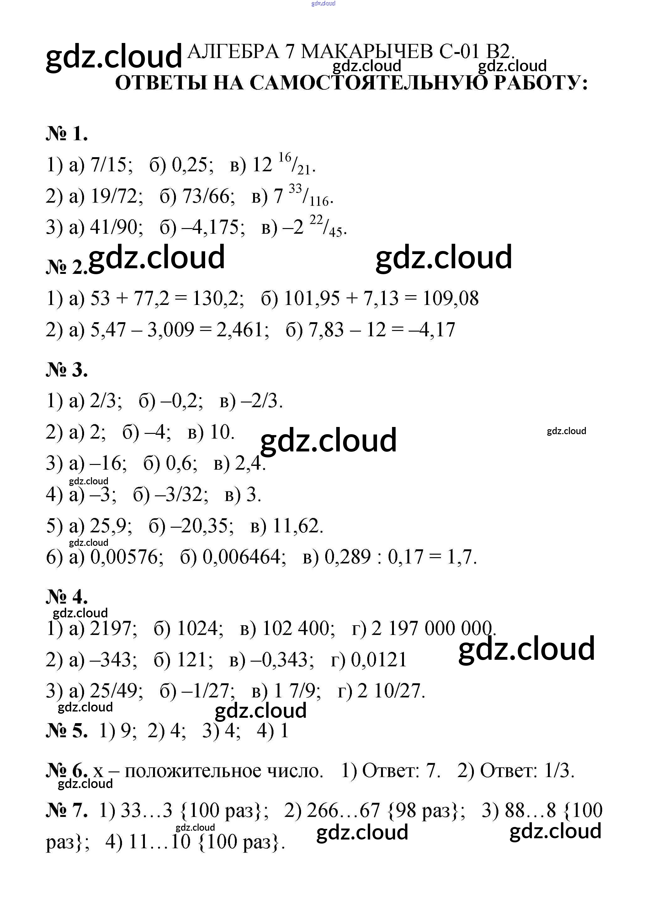 Ответ на задание С-1. Вычисление значения числового выражения Дидактические материалы Алгебра  за 7 (седьмой) класс Звавич, Кузнецова, Суворова   2012