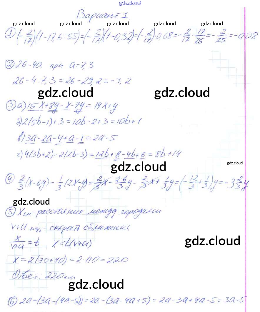 Вариант 1 Ответы к Контрольным работам по Алгебре 7 класс Дидактические материалы Звавич    Просвещение