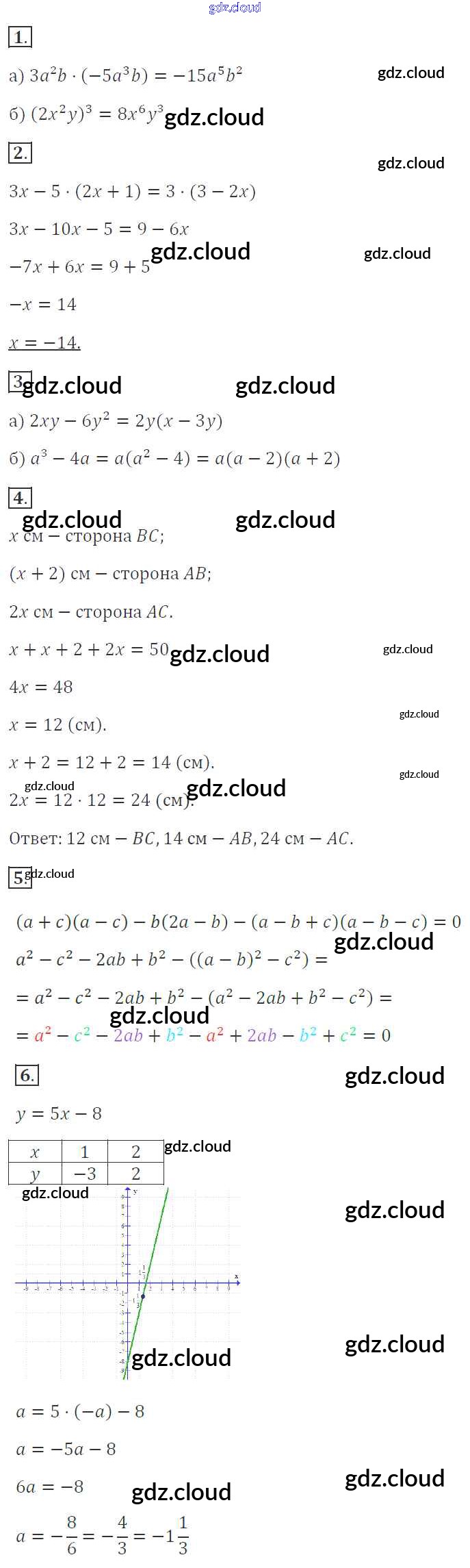 Вариант 1 Ответы к Контрольным работам по Алгебре 7 класс Дидактические материалы Звавич Просвещение