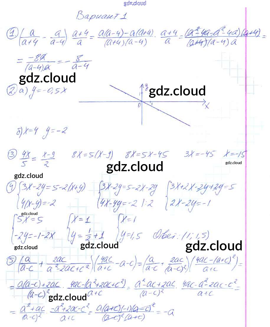 Вариант 1 Ответы к Контрольным работам по Алгебре 7 класс Дидактические материалы Звавич Просвещение