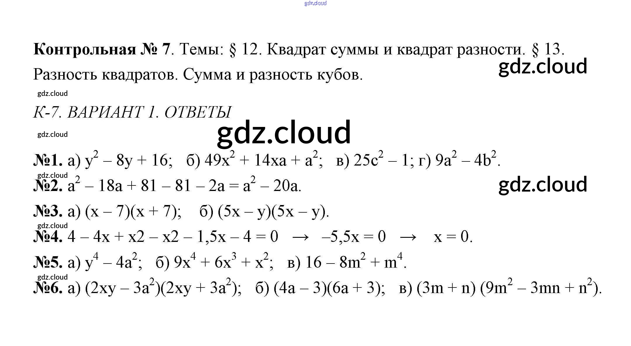 Вариант 1 Ответы к Контрольным работам по Алгебре 7 класс Дидактические материалы Звавич    Просвещение