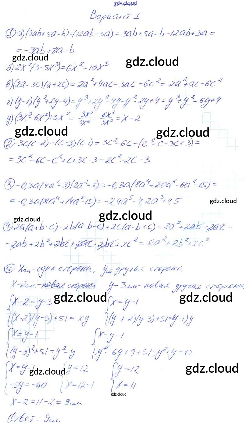 Вариант 1 Ответы к Контрольным работам по Алгебре 7 класс Дидактические материалы Звавич    Просвещение
