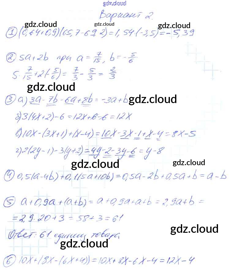 Вариант 2 Ответы к Контрольным работам по Алгебре 7 класс Дидактические материалы Звавич    Просвещение