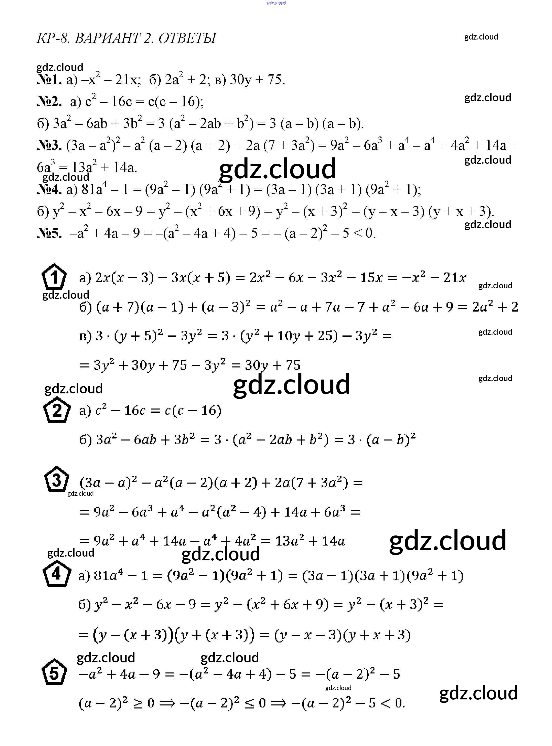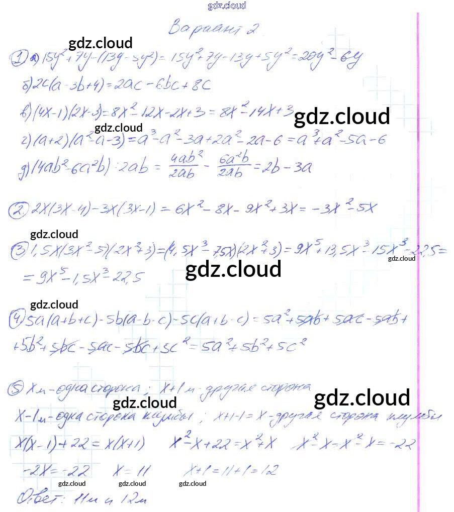 Вариант 2 Ответы к Контрольным работам по Алгебре 7 класс Дидактические материалы Звавич    Просвещение