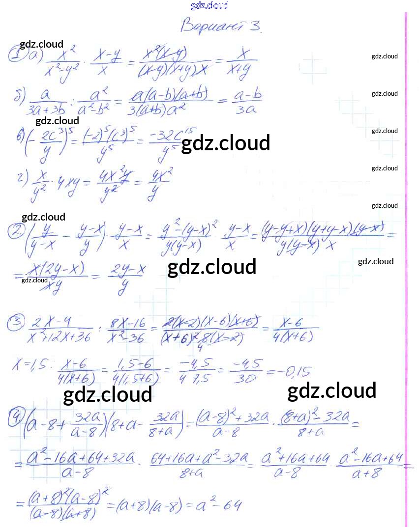 Вариант 3 Ответы к Контрольным работам по Алгебре 7 класс Дидактические материалы Звавич Просвещение
