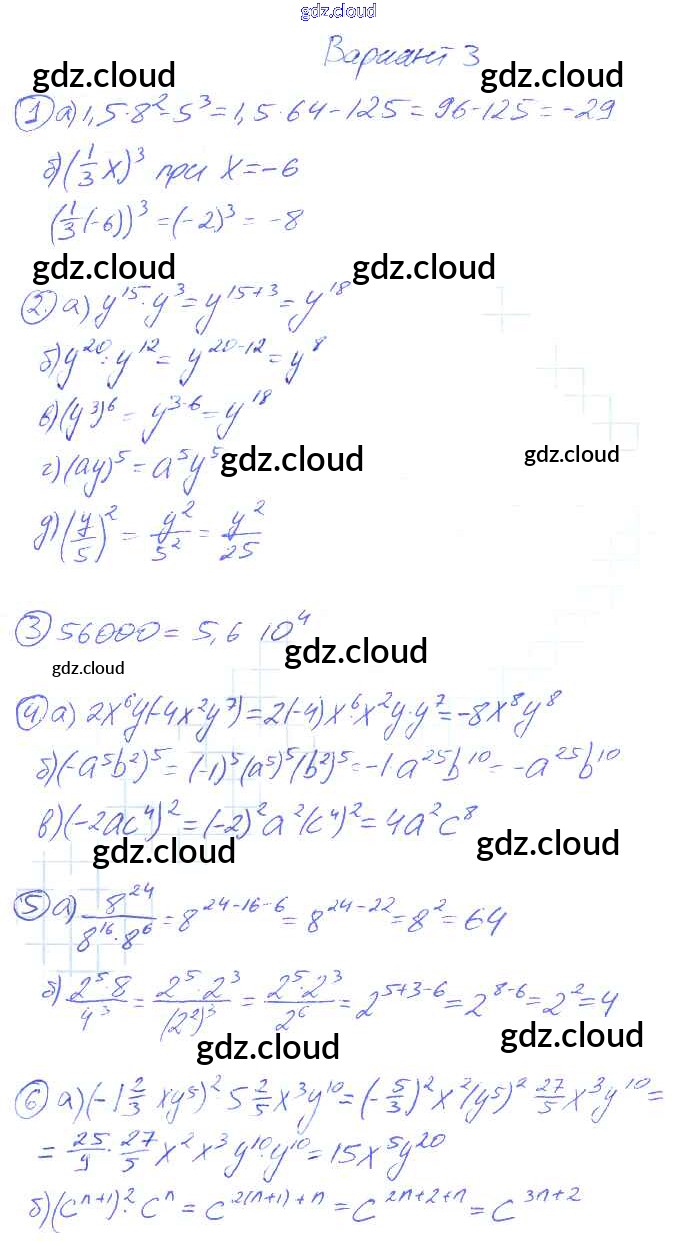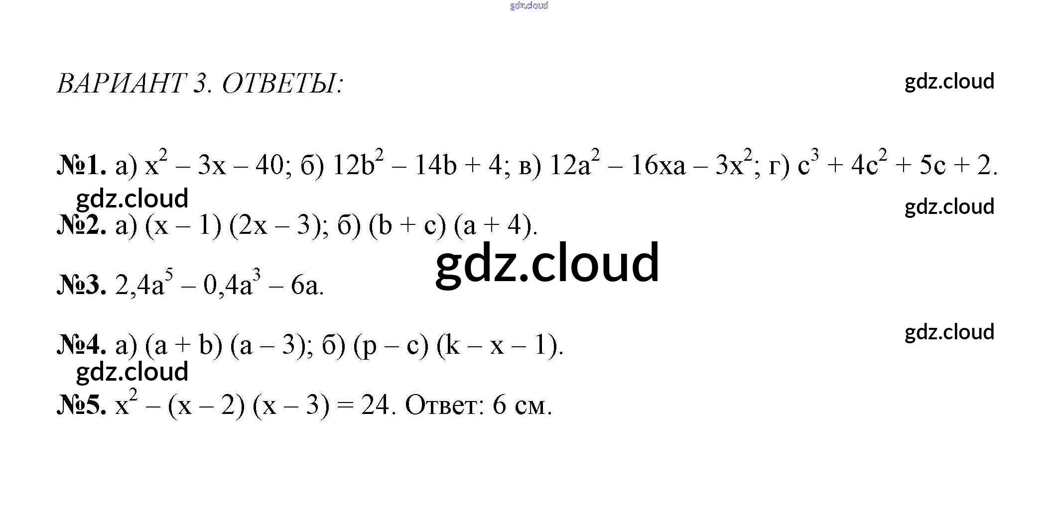 Вариант 3 Ответы к Контрольным работам по Алгебре 7 класс Дидактические материалы Звавич    Просвещение