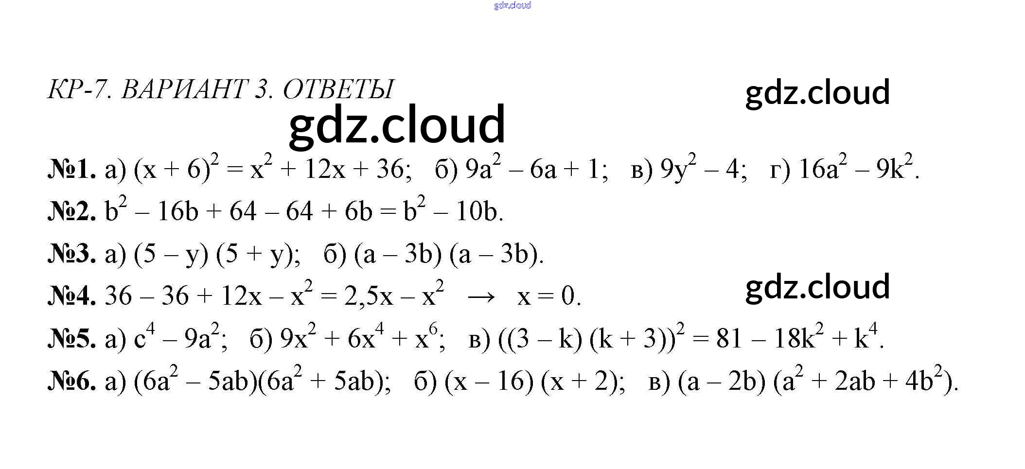 Вариант 3 Ответы к Контрольным работам по Алгебре 7 класс Дидактические материалы Звавич    Просвещение