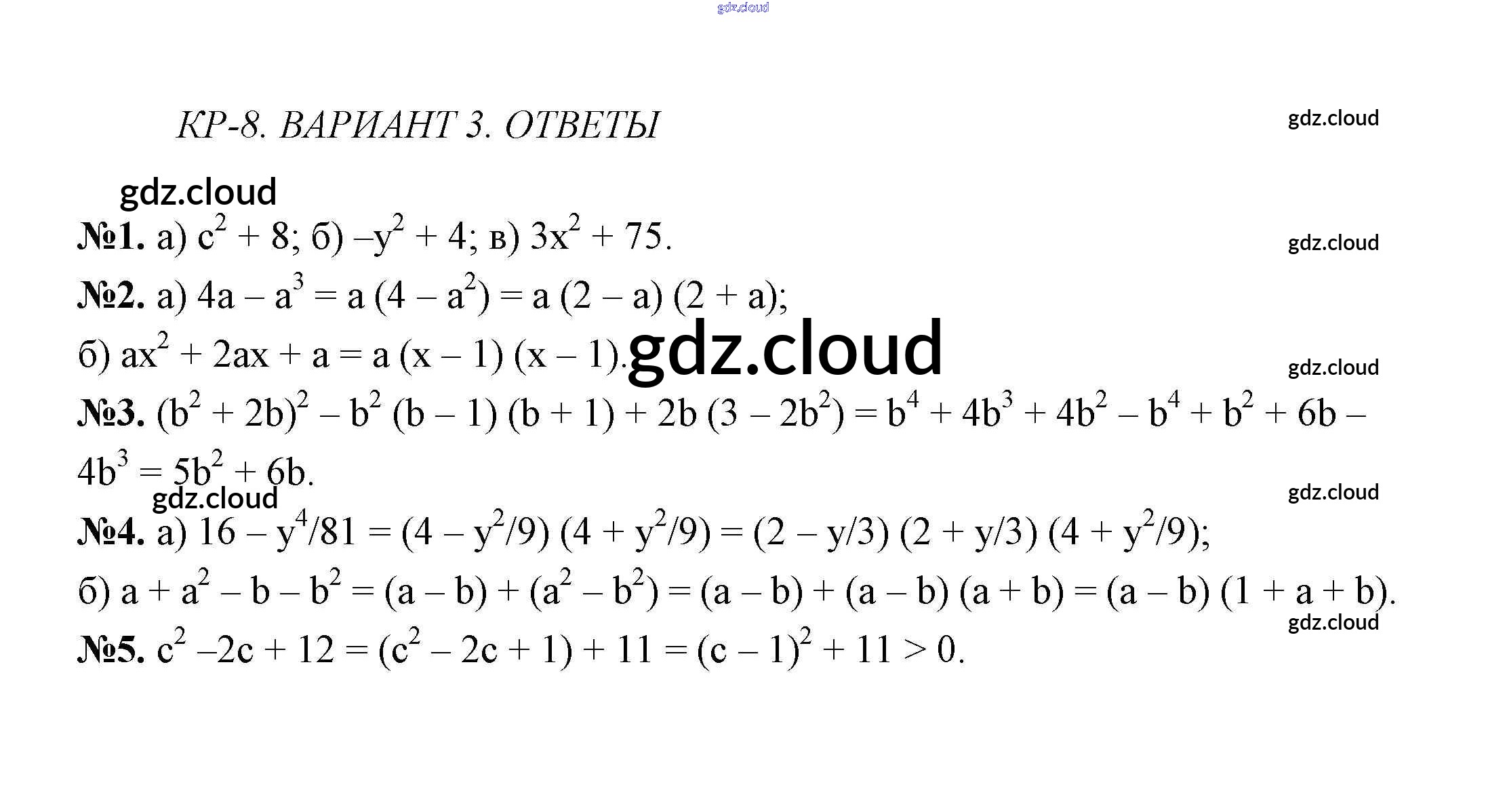 Вариант 3 Ответы к Контрольным работам по Алгебре 7 класс Дидактические материалы Звавич    Просвещение
