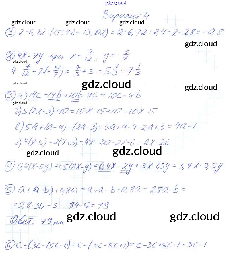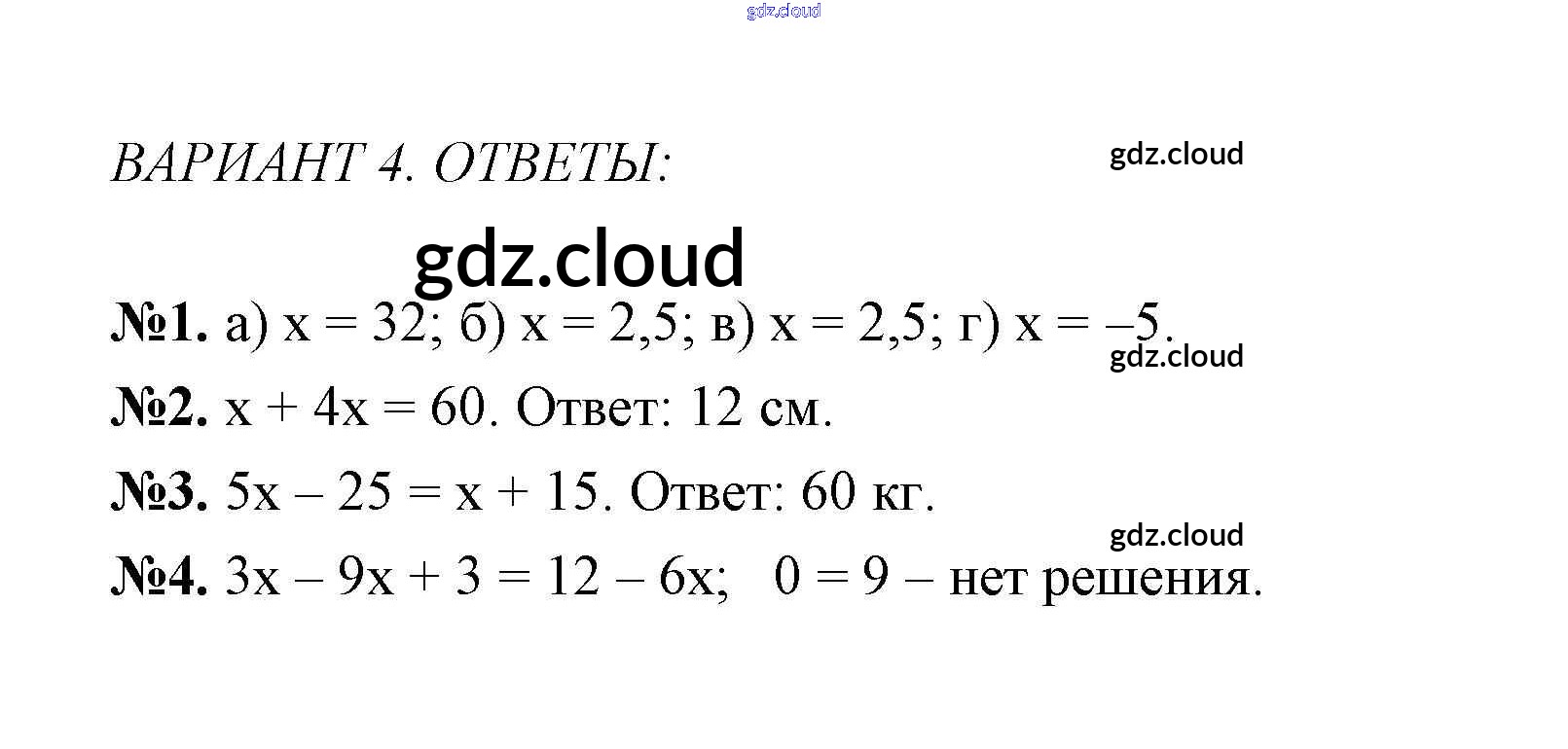 Вариант 4 Ответы к Контрольным работам по Алгебре 7 класс Дидактические материалы Звавич    Просвещение